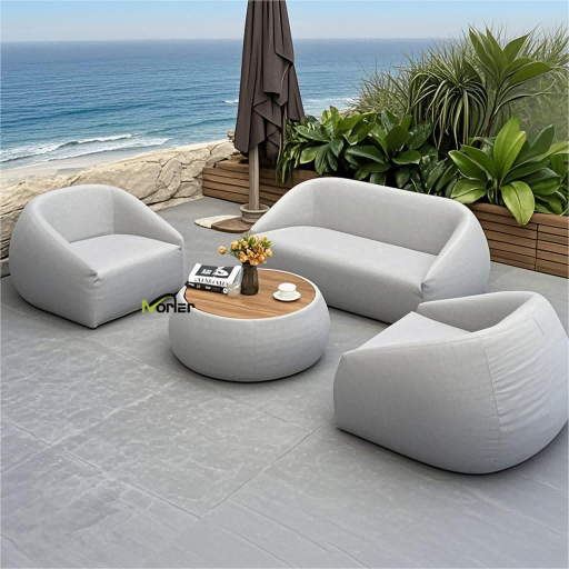 3. Gepolstertes Outdoor-Sofa: Ein Komforterlebnis für faule Menschen mit weichen, dicken Kissen und schnell trocknenden Materialien, die ein bequemes Liegen oder Sitzen ermöglichen.
